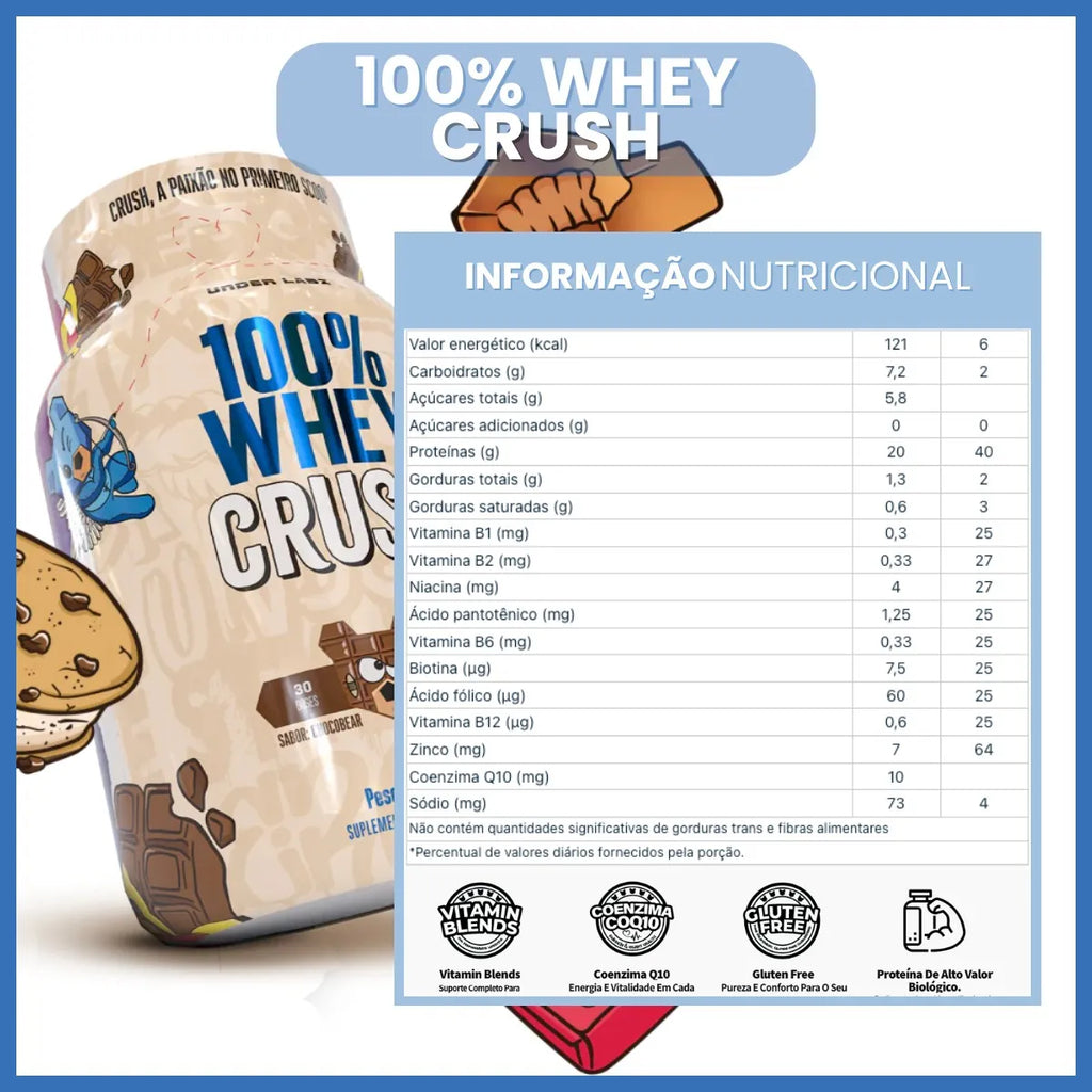 O 100% Whey Crush é um suplemento proteico de alto valor biológico, desenvolvido para quem busca ganho de massa muscular, recuperação e performance, sem abrir mão de um sabor diferenciado.